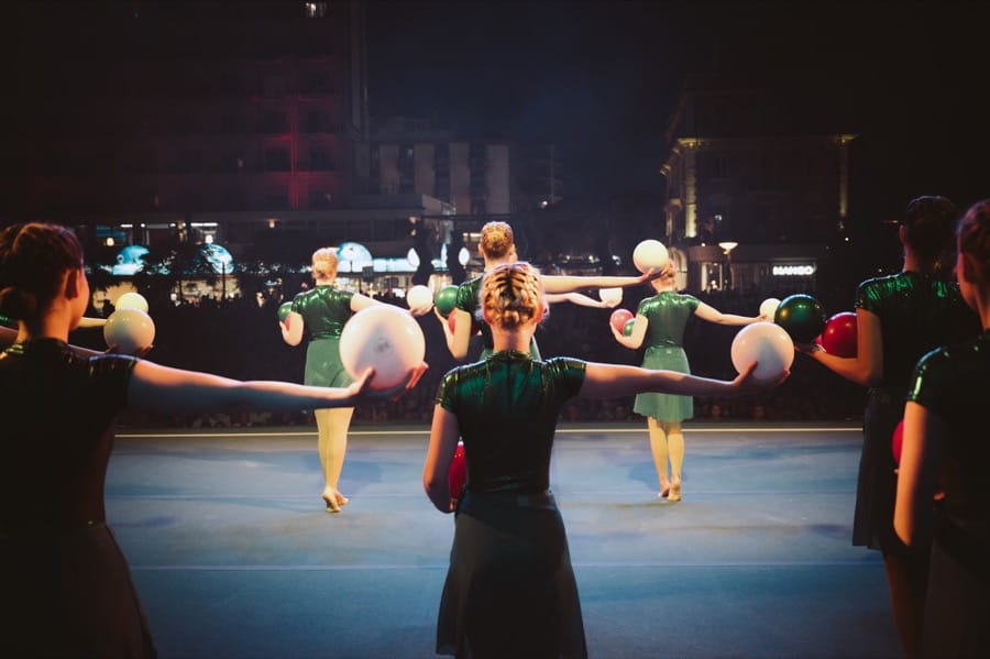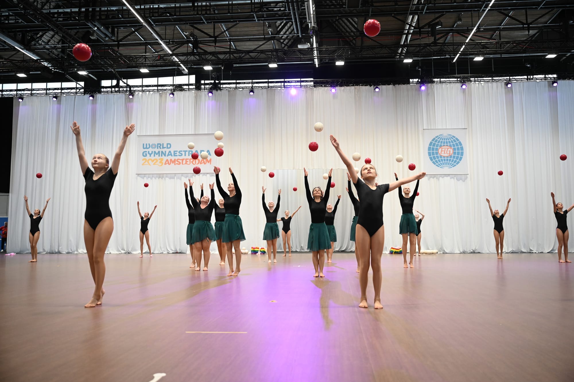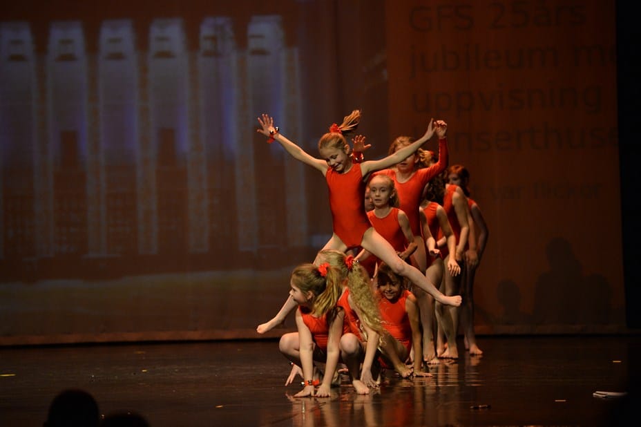 GF Stockholmsflickorna bedriver uppvisningsgymnastik med inriktning på övningar med och utan gymnastikbollar till musik. På träningarna utvecklar vi balans, koordination och styrka i kombination med stil och smidighet, men framförallt har vi roligt tillsammans! De olika övningarna sätts samman till program som visas upp på gemensamma uppvisningar varje termin. De äldre gymnasterna deltar även på externa evenemang och festivaler i Sverige och internationellt.